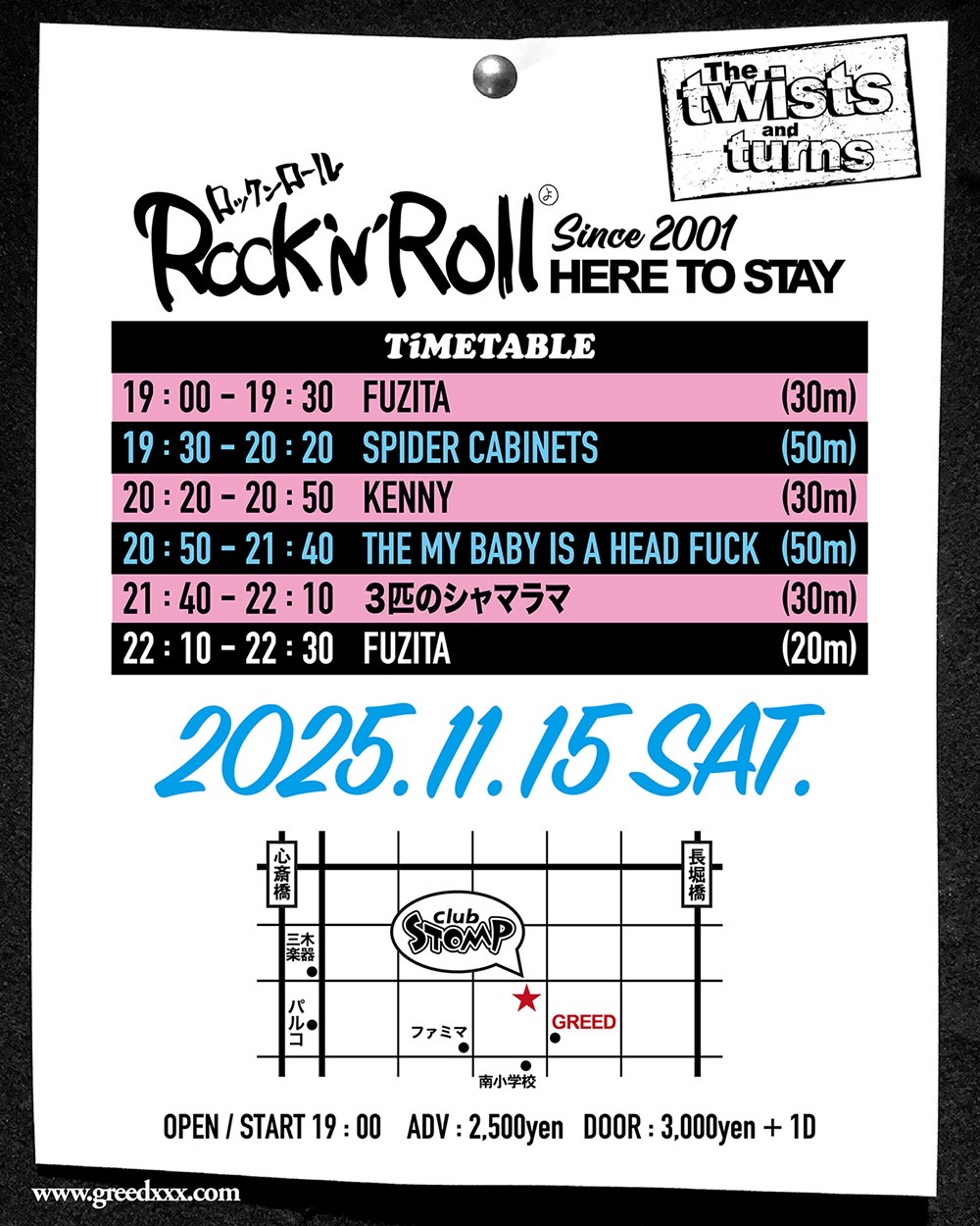 DICE FOR LIGHTS、THE SWING KIDS、SPIDER CABINETSの3バンドによる